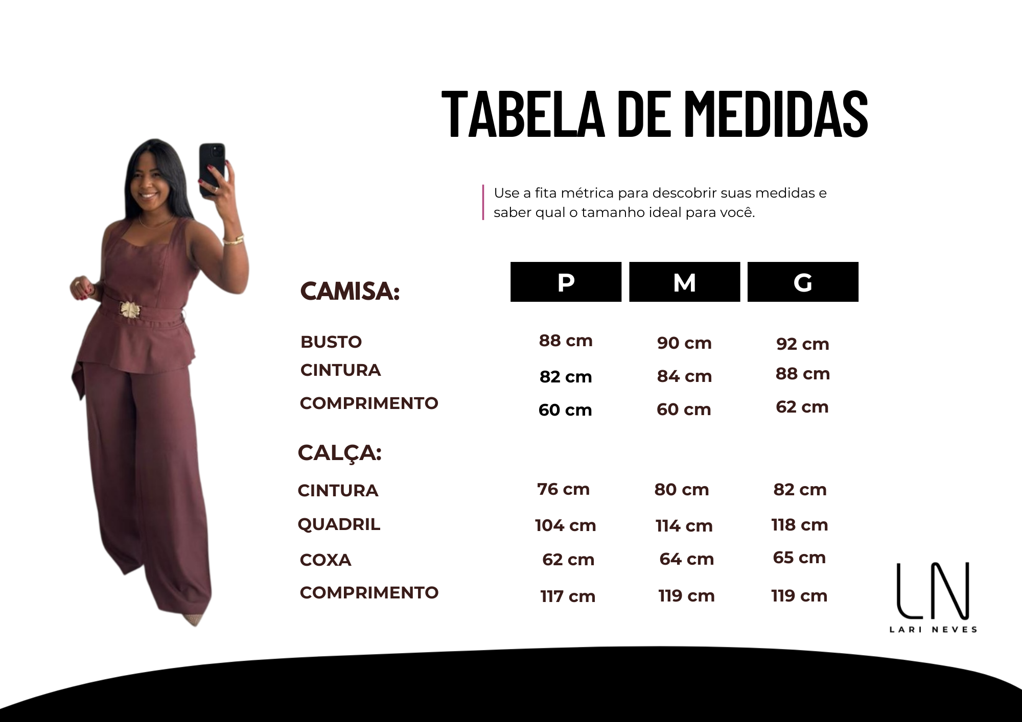 A calça de modelagem ampla e caimento impecável alonga a silhueta e garante elegância ao visual. Possui zíper lateral e passantes na cintura. O tecido leve proporciona conforto sem perder a elegância, tornando o conjunto perfeito para diversas ocasiões.