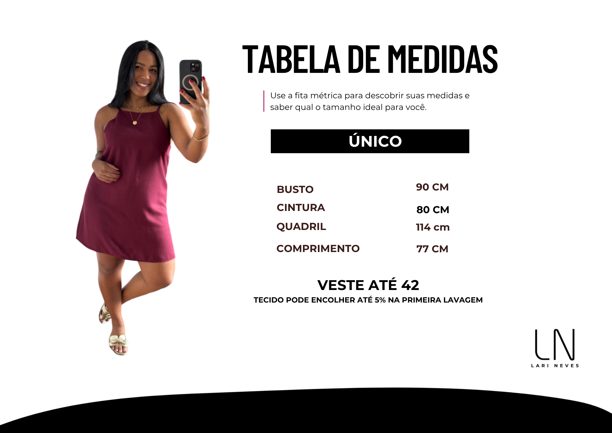 Tecido pode encolher até 5% depois da primeira lavagem.