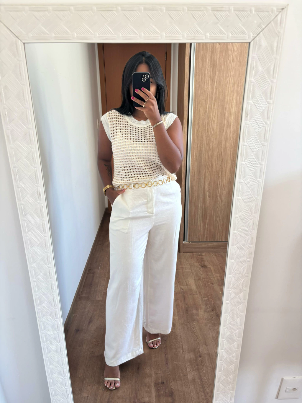 A Regata Milla é incrivelmente versátil, podendo ser utilizada em diversas produções. Combine-a com uma pantalona para um look sofisticado ou opte por um shorts para um visual mais despojado.