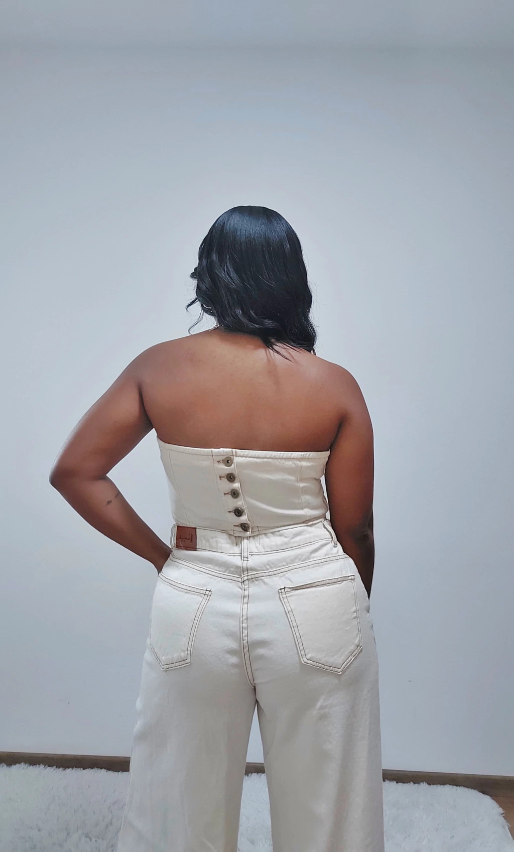 Top Clara posso botões na parte das costas e com decote quadrado.
