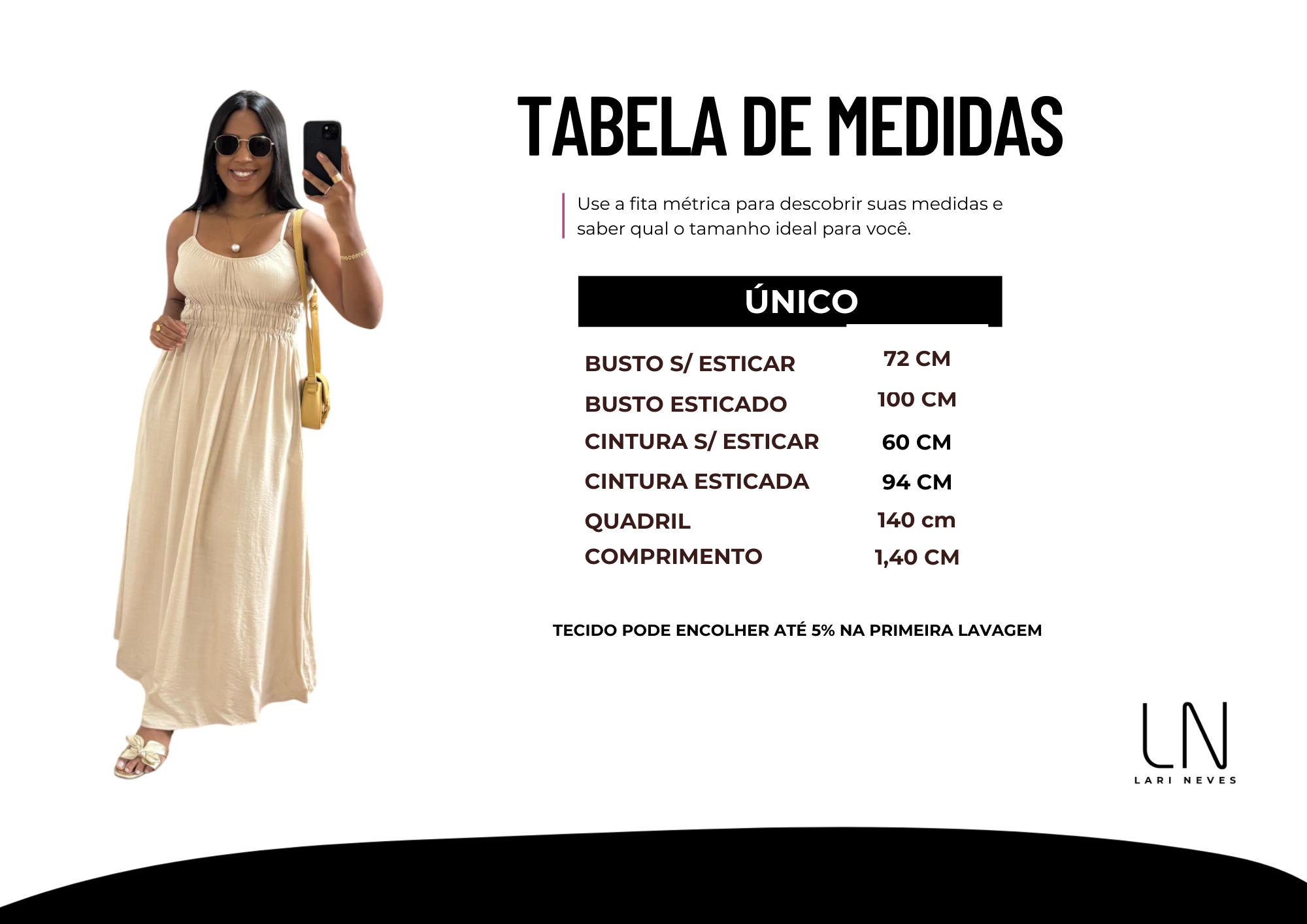 O Vestido Alana veste até o tamanho 44, abraçando diferentes tipos de corpo com charme e delicadeza. Seu design permite combinações variadas: use com tênis para um look casual, sandália para um visual sofisticado ou rasteira para momentos descontraídos.