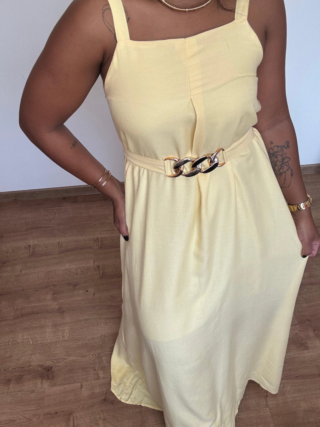 • Sinto removível que permite versatilidade no uso: ajuste a cintura para um visual mais marcado ou deixe o vestido mais amplo para um toque de leveza.