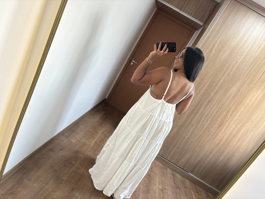 Vestido longo Letíca, com regulagem na cintura de nas alças, dando movimento e sofisticação para a peça.