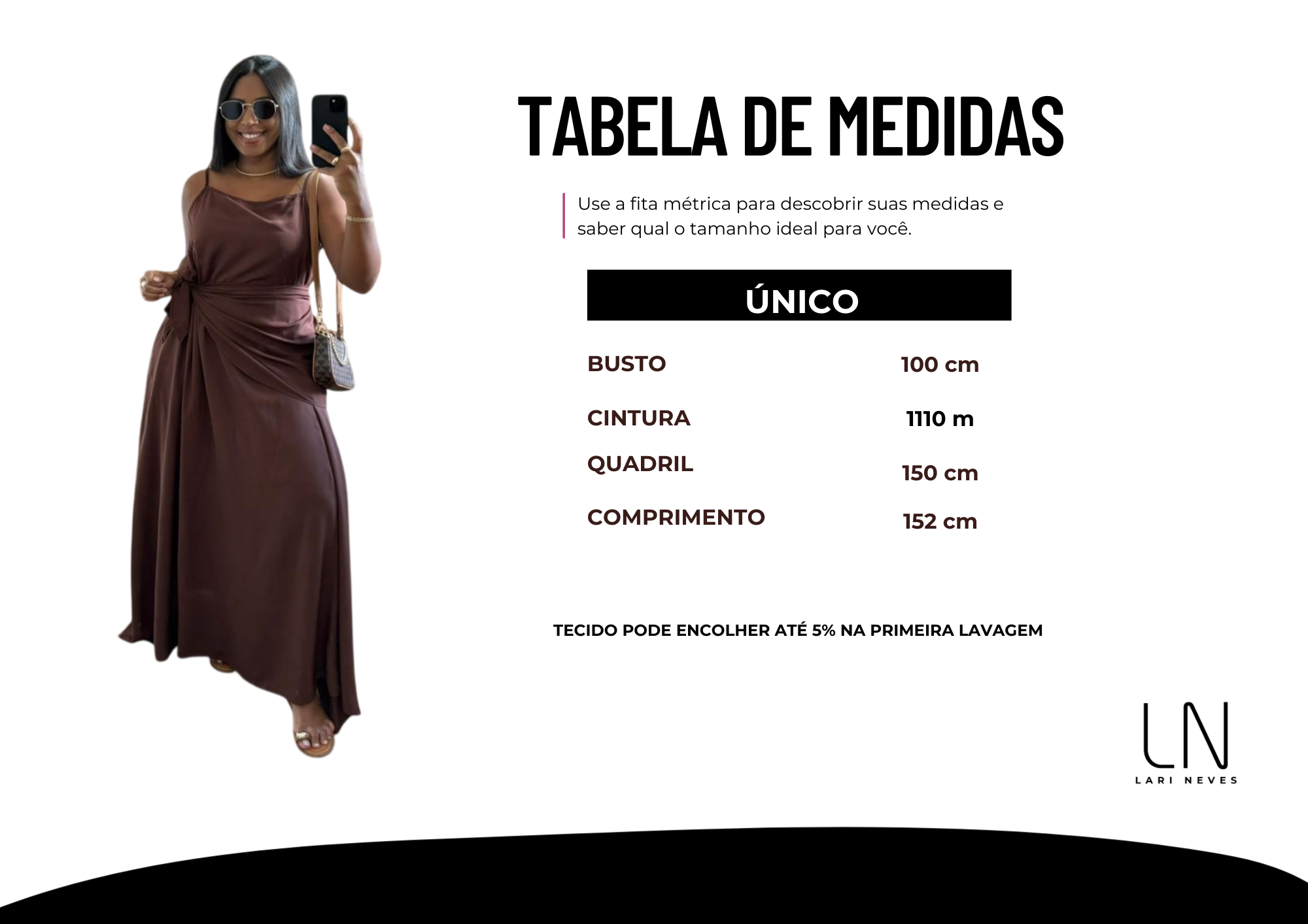 • Lenço refinado: acompanha a peça para marcar a cintura com delicadeza, realçando a feminilidade do seu visual.