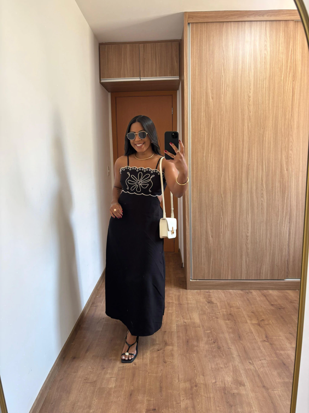 Combine o Vestido Michele com sandálias de salto para um visual mais refinado, ou com rasteiras para um look descontraído e elegante. Aposte em acessórios delicados para destacar ainda mais a sua presença.