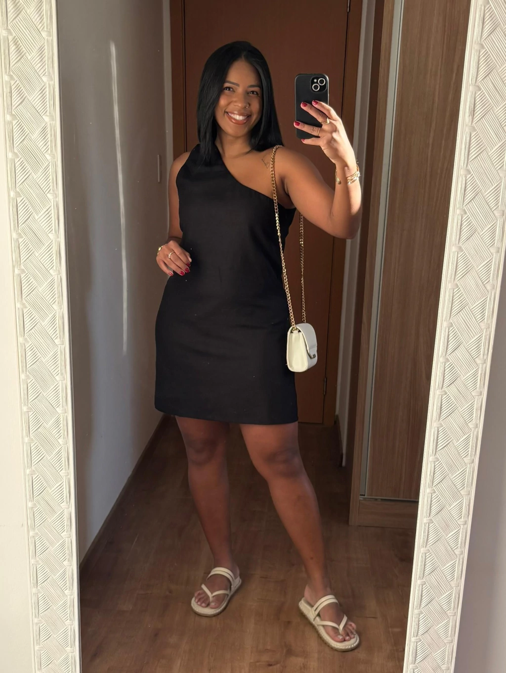 Apresentamos o Vestido Mirele, uma peça sofisticada que combina estilo e conforto. Confeccionado em tecido de viscolinho, este vestido possui um corte assimétrico que valoriza o ombro, proporcionando um toque único e elegante ao seu visual.