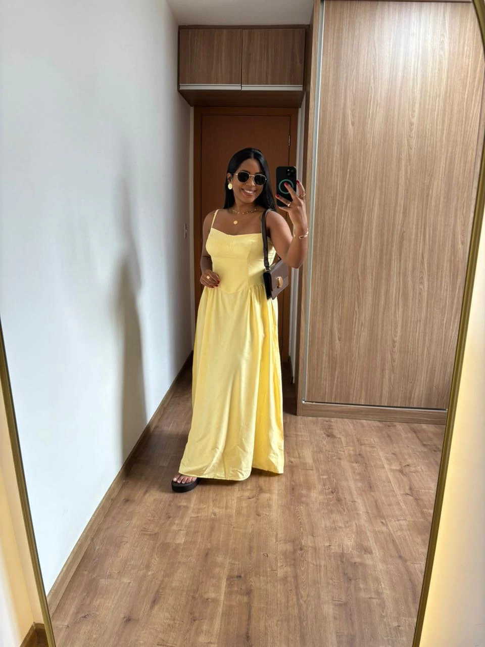 Descubra o charme do Vestido Samanta, confeccionado em viscose de alta qualidade, que oferece leveza e um caimento fluido para você brilhar em qualquer ocasião. Seu design com alças regulares e lastex nas costas proporciona ajuste perfeito e conforto durante todo o dia.