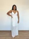 Vestido longo Valentina, decote em V na frente e com lastex na parte de trás.