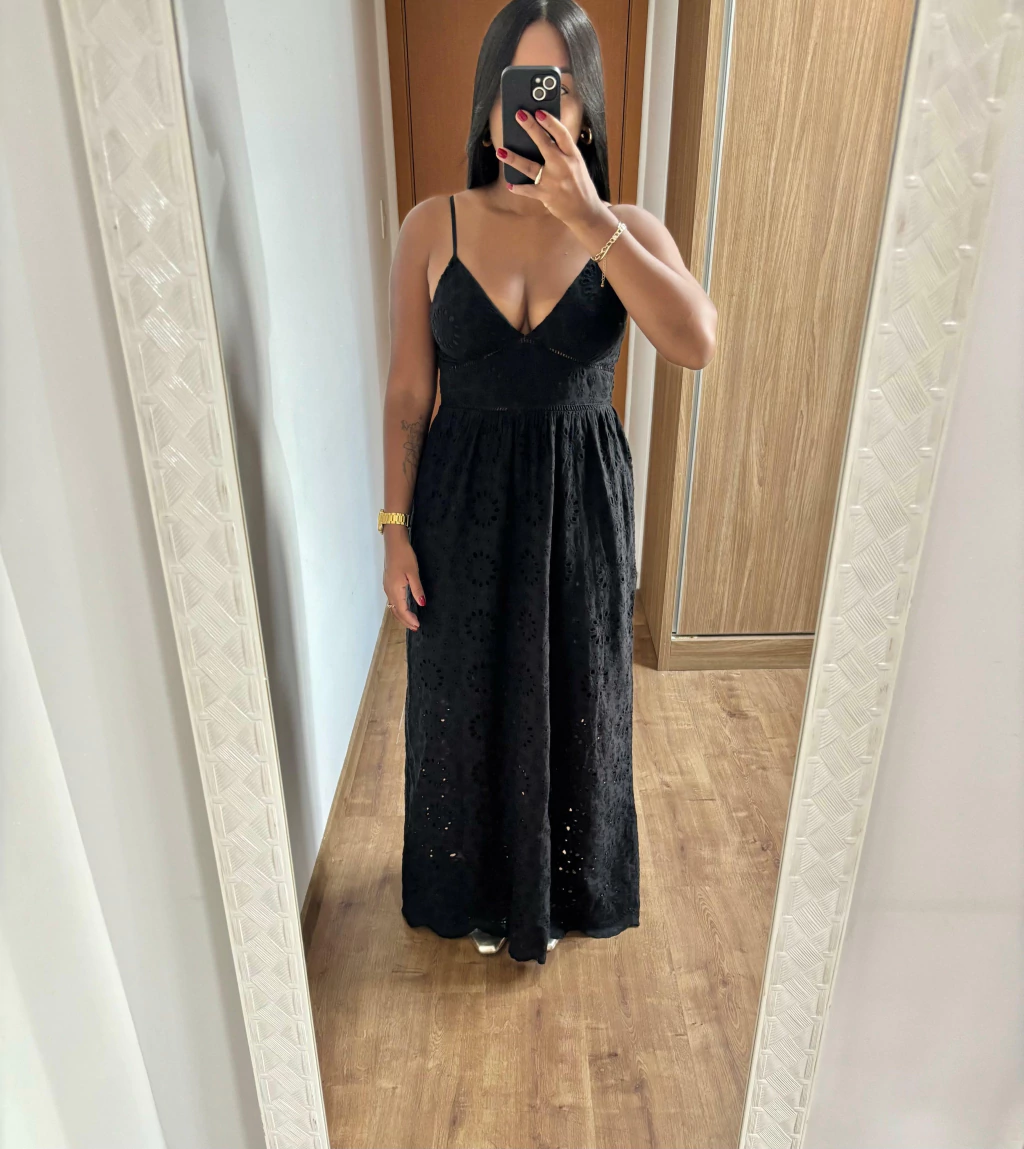 Nosso Vestido Valentina combina com um jantar, passeio durante o dia e momentos em família.
